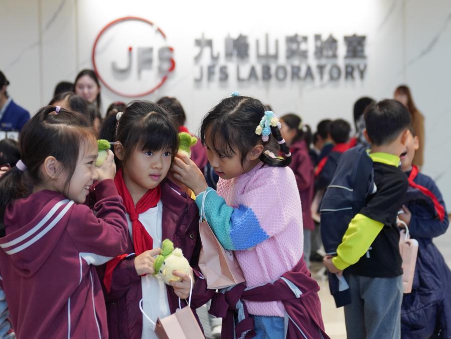 6日、東湖ハイテク開発区にある九峰山実験室を見学する小学生。(武漢=新華社記者/戴明軒)