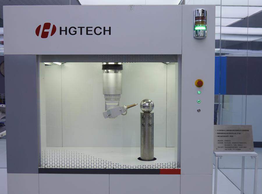 6日、東湖ハイテク開発区にある華工科技レーザー科学館に展示された3次元レーザーヘッド。(武漢=新華社記者/戴明軒)