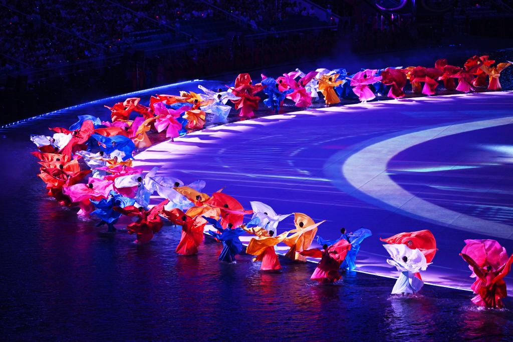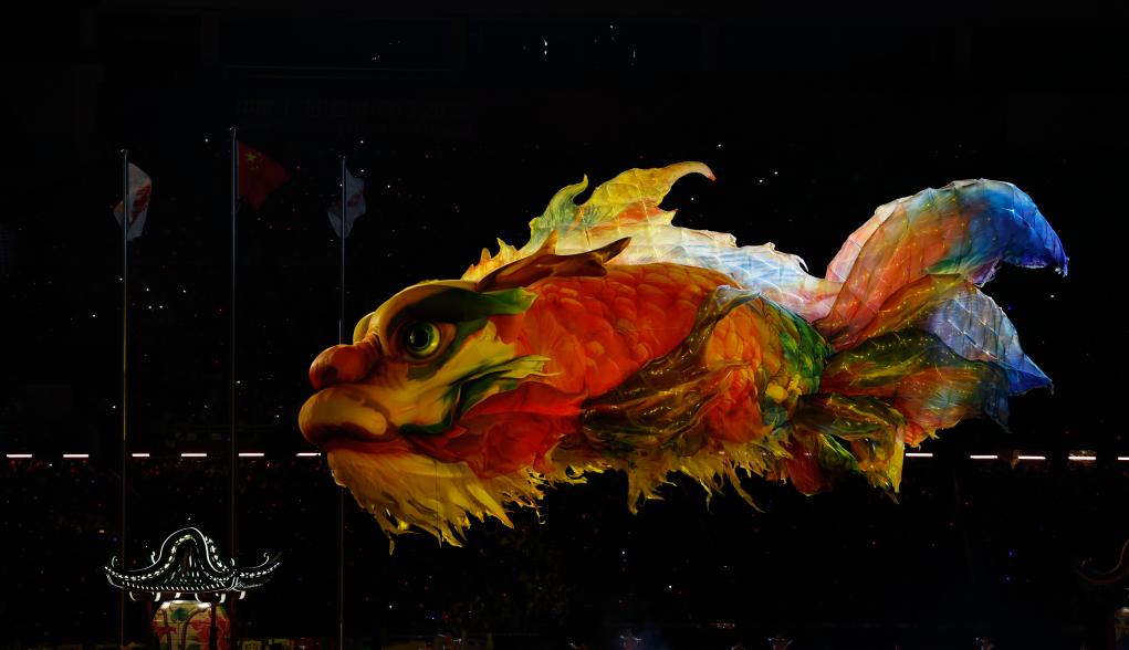 9日、第15回全国運動会の開会式で行われたパフォーマンス。(広州=新華社記者/黄偉)