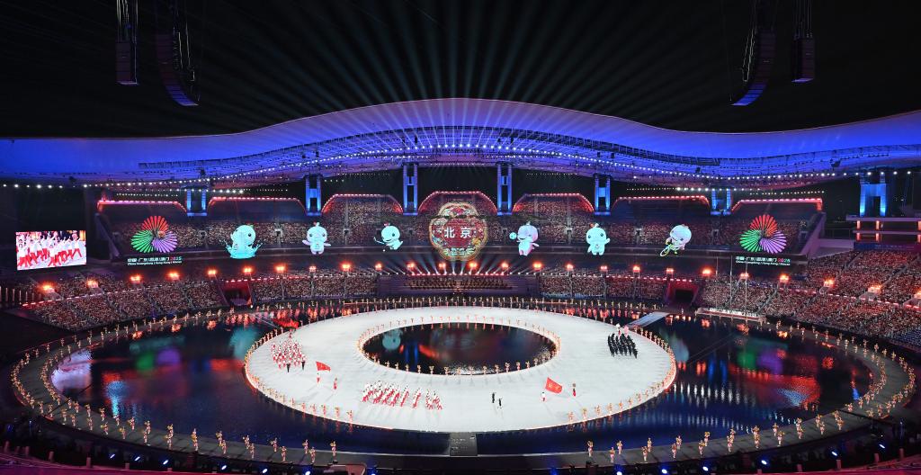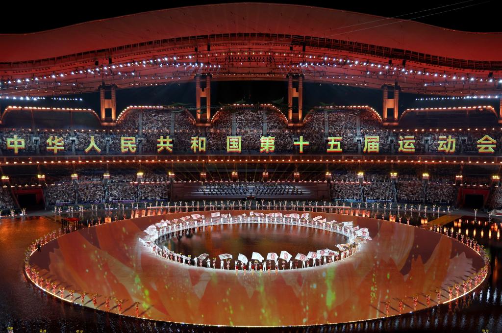 【新華社広州11月9日】中国広東省広州市の広東オリンピックスポーツセンターで9日夜、第15回全国運動会の開会式が開かれた。