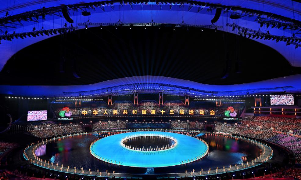 9日、第15回全国運動会の開会式が開かれた広東オリンピックスポーツセンター。(広州=新華社記者/盧漢欣)