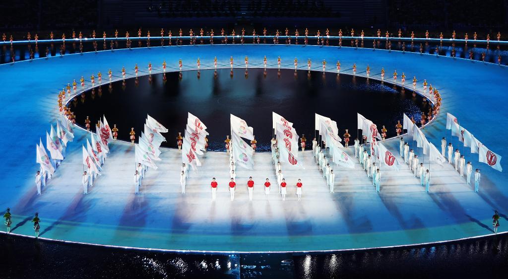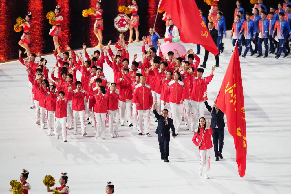9日、開会式で入場する北京市代表団。(広州=新華社記者/楊冠宇)