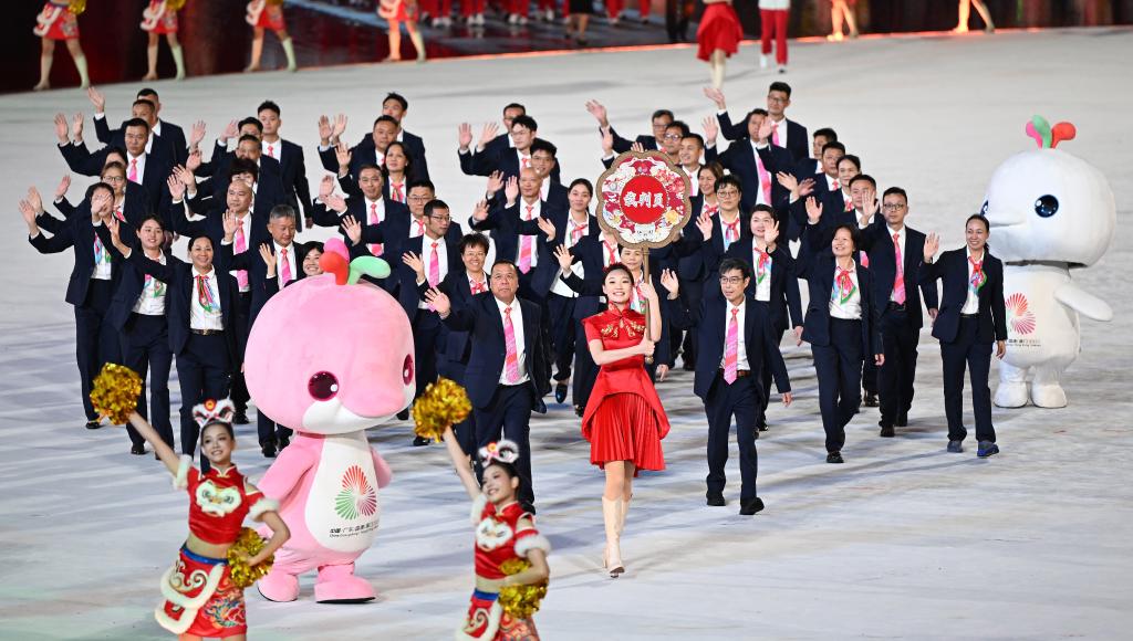9日、開会式で入場する河南省代表団。(広州=新華社記者/薛宇舸)