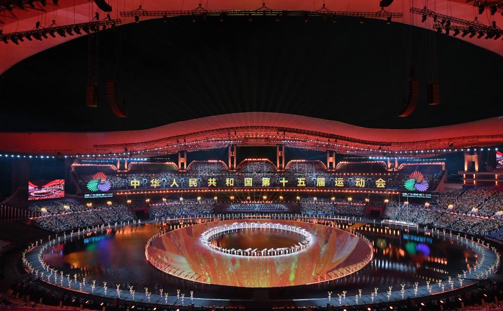 9日、第15回全国運動会の開会式が行われた広東オリンピックスポーツセンター。(広州=新華社記者/楊世尭)