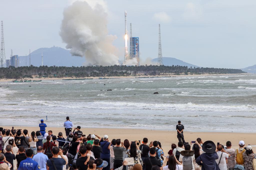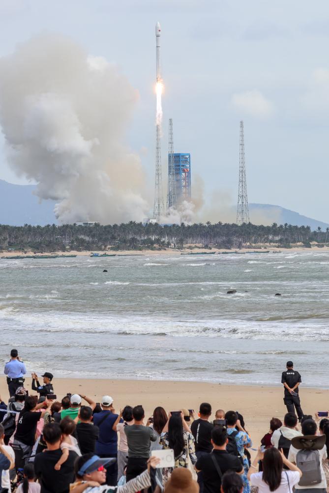 10日、海南商業宇宙発射場から打ち上げられる運搬ロケット「長征12号」。(文昌=新華社記者/張麗蕓)