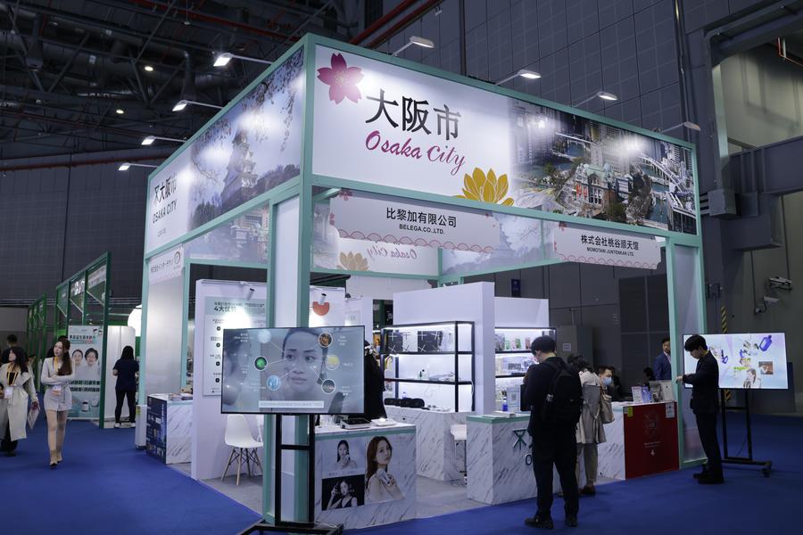 7日、第8回中国国際輸入博覧会の大阪市ブース。(上海=新華社記者/藍建中)