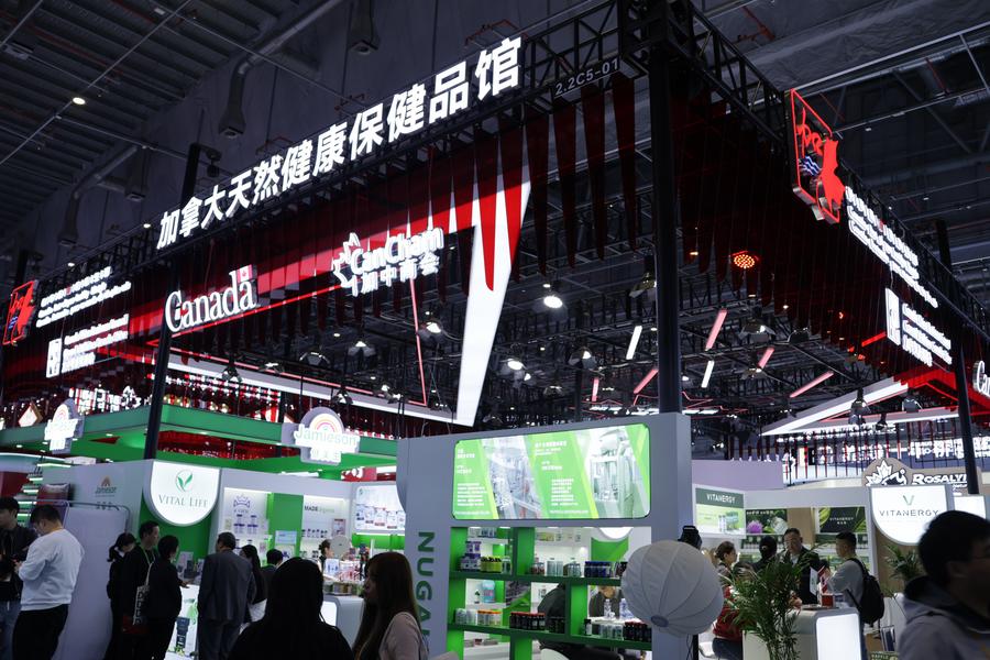 7日、第8回中国国際輸入博覧会のカナダ健康保健品館。(上海=新華社記者/藍建中)