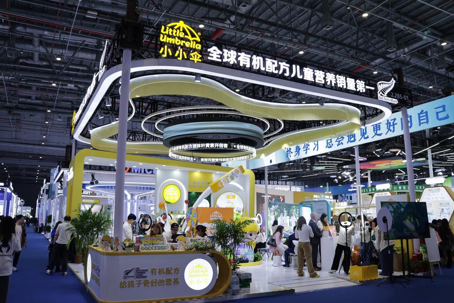 7日、第8回中国国際輸入博覧会に出展したニュージーランドサプリメーカー「Little Umbrella」のブース。(上海=新華社記者/藍建中)