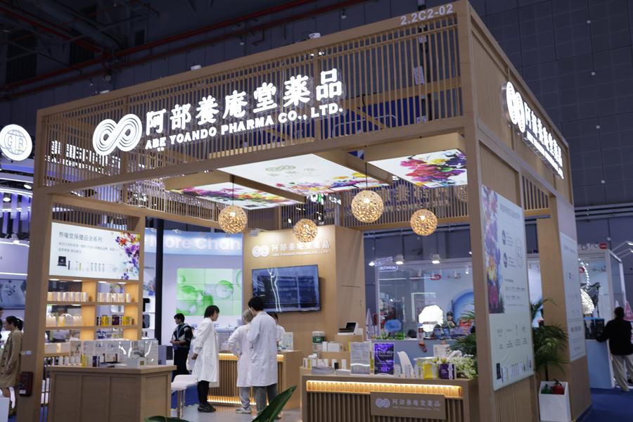 7日、第8回中国国際輸入博覧会の阿部養庵堂薬品ブース。(上海=新華社記者/藍建中)