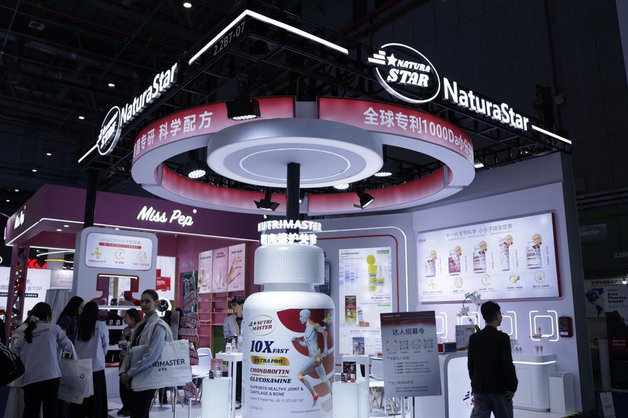 7日、第8回中国国際輸入博覧会に出展した米健康・栄養製品メーカー「Natura Star」のブース。(上海=新華社記者/藍建中)