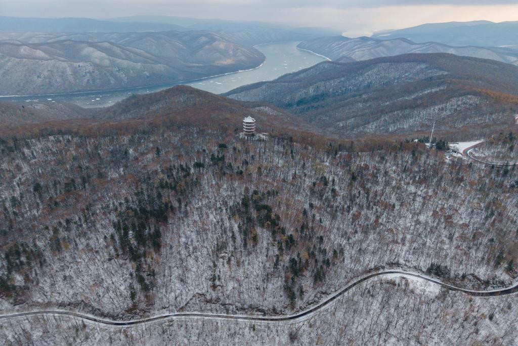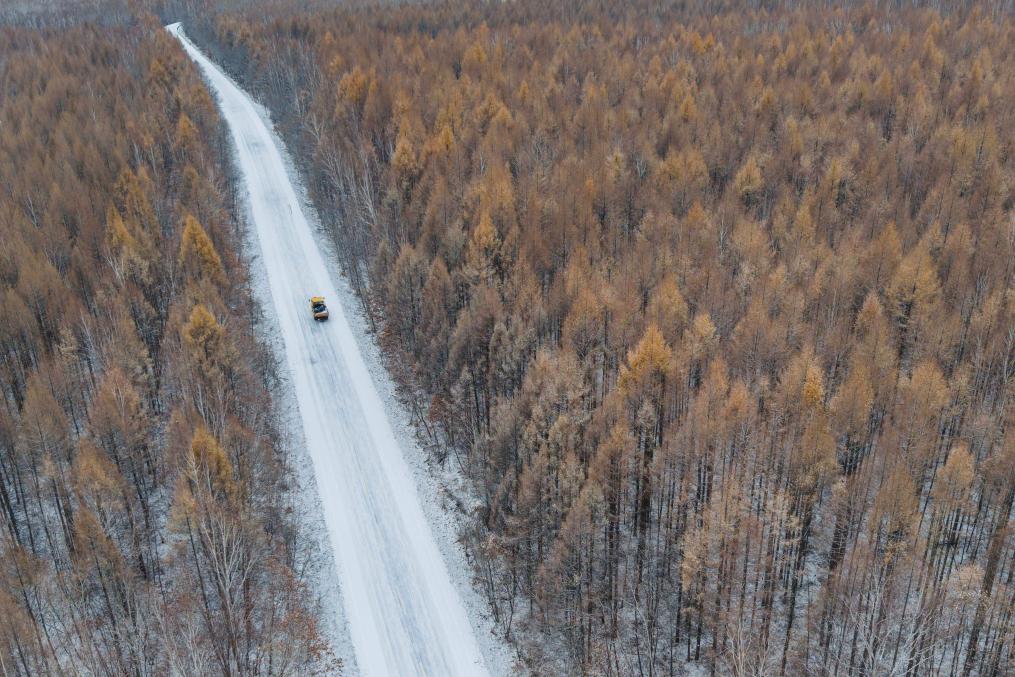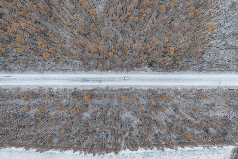 【新華社ハルビン11月10日】中国遼寧省丹東市と新疆ウイグル自治区アルタイ地区を結ぶ国道331号線は6日、黒竜江省伊春市嘉蔭県から鶴崗市蘿北県の区間で雪化粧した。一帯には神秘的な風景が広がった。