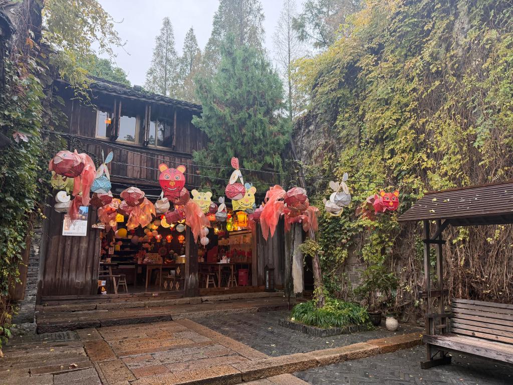 7日、烏鎮にある花灯(飾りちょうちん)の店。(烏鎮=新華社記者/陳雨寧)
