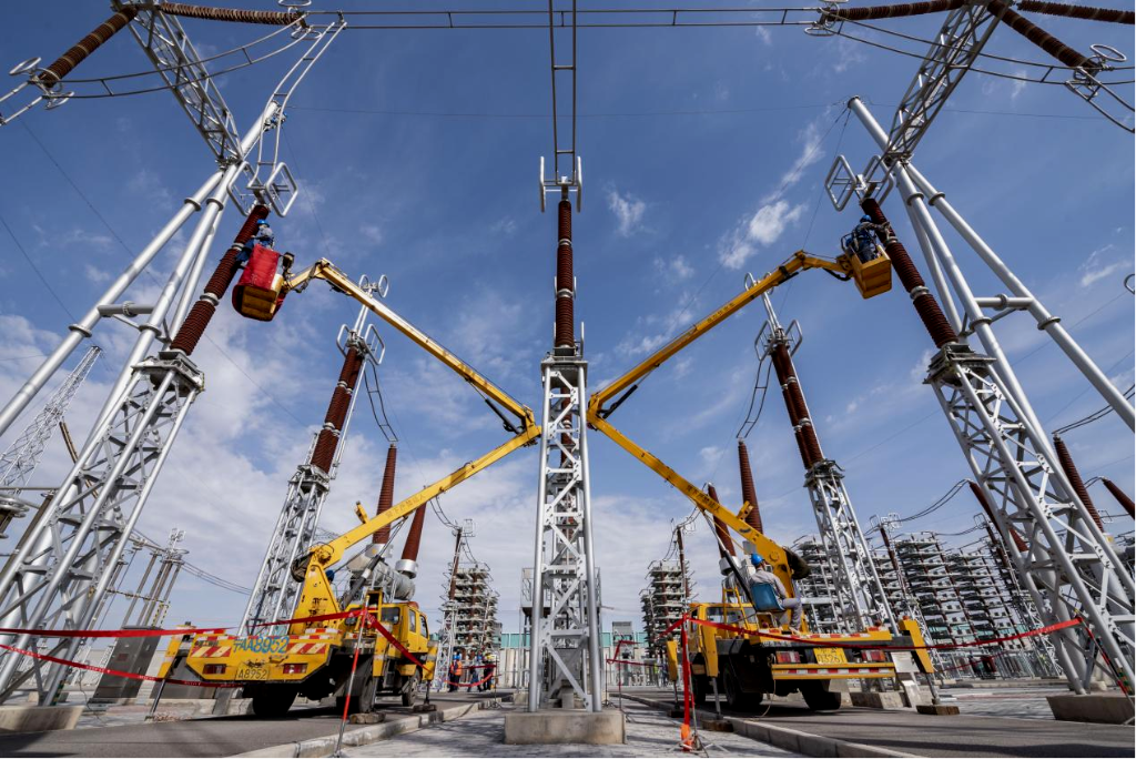 同自治区錫林郭勒(シリンゴル)盟と山東省を結ぶ千キロボルト超高圧交流変電プロジェクトが2016年にまず運用を開始し、24年には同自治区8本目の超高圧送電ルートとなる錫林郭勒盟錫林浩特市勝利変電所と河北省張家口市張北変電所を結ぶ千キロボルト超高圧交流プロジェクトが稼働した。この間、同自治区は石炭、風力、太陽エネルギーなどの資源優位性を生かし山東省や天津市、山西省、江蘇省、河北省などの電力負荷センターを結ぶ超高圧基幹網を構築し、域外への年間送電量を17年の73億7100万キロワット時から24年には1706億キロワット時に増やした。