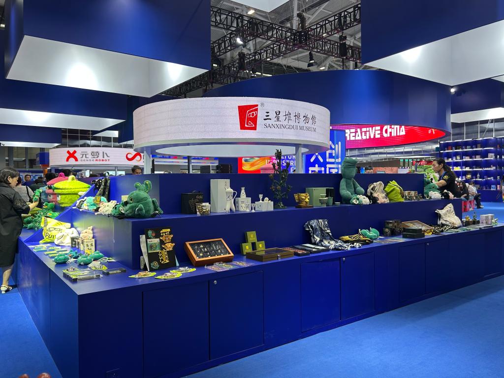 第6回国家考古遺跡公園文化芸術週間のイベントに出展した三星堆博物館のミュージアムグッズ展示エリア。(4月27日撮影、成都=新華社配信)
