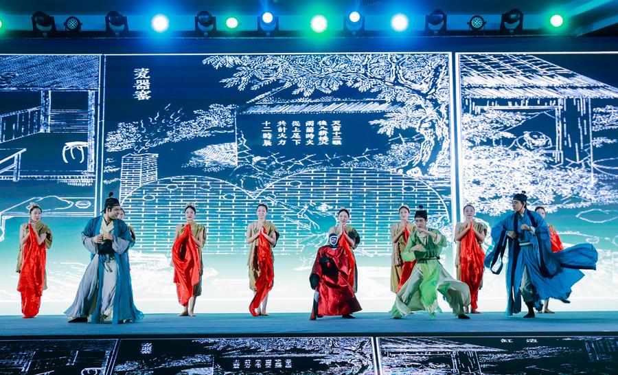 11日、「天工開物」円卓会議の会場で披露された舞踊劇「天工開物」。(北京=新華社配信)