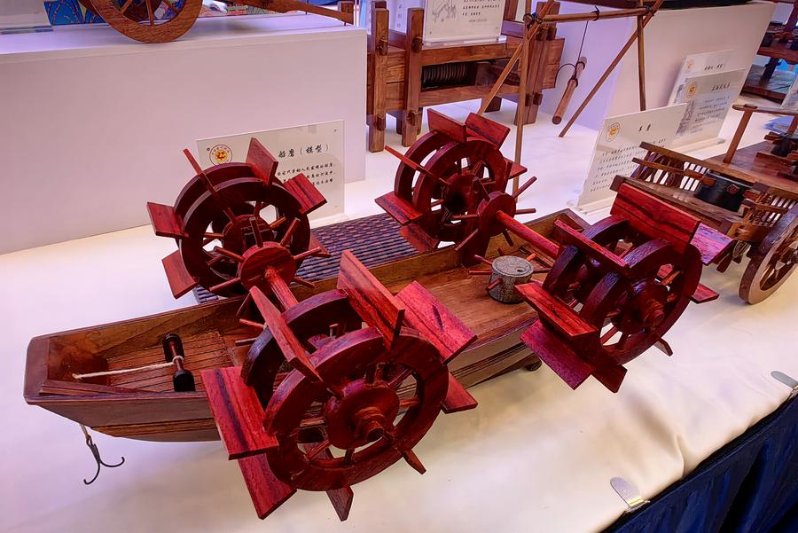 11日、「天工開物」円卓会議の会場に展示された模型。(北京=新華社記者/呉寒氷)
