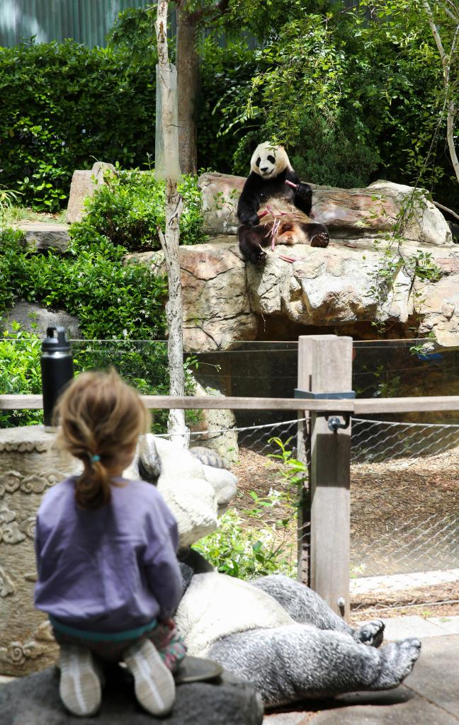 10日、オーストラリアのアデレード動物園でパンダを見る子ども。(アデレード=新華社記者/馬平)