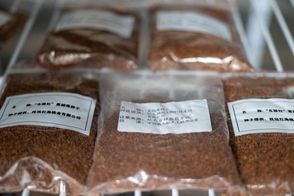 6日、撫遠市のクランベリー研究開発センターで保管されている種子。(撫遠=新華社記者/張濤)