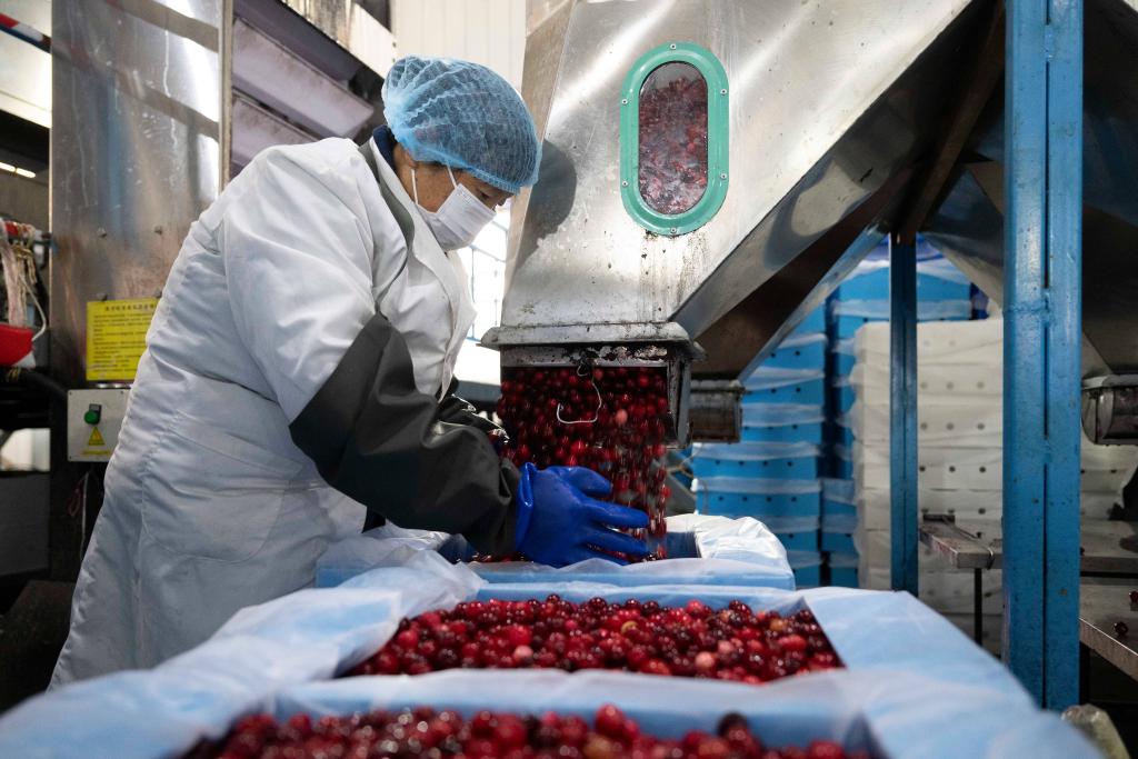 【新華社ハルビン11月12日】中国最東端に位置する黒竜江省撫遠(ふえん)市は、クランベリーの栽培に適した自然条件がそろっている。これまでクランベリー産地は主に北米に集中していたが、同市が2014年に栽培を開始。行政、企業、研究機関、大学が協力して技術革新を進め、栽培技術を確立し、輸入に頼っていた果実を国内に定着させた。