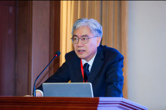8日、基調講演を行う北京外国語大学の許家金(きょ・かきん)教授。(北京=新華社配信)