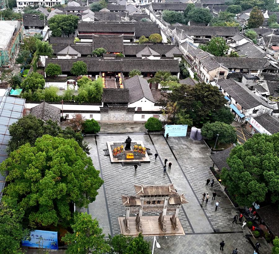 空から見た王陽明旧居。(2024年10月31日、ドローンから、余姚=新華社配信/呉大慶)