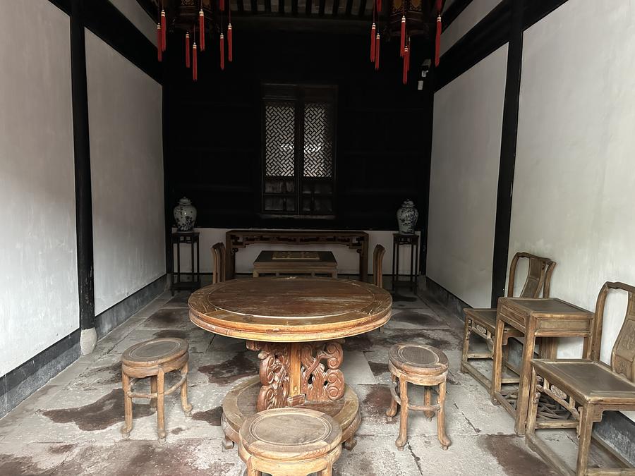 王陽明旧居の棋室(象棋などを楽しむ部屋)。(10月30日撮影、余姚=新華社記者/邱虹)