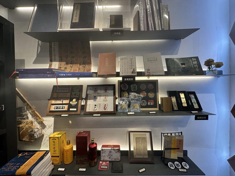 王陽明旧居で販売されているオリジナルグッズ。(10月30日撮影、余姚=新華社記者/邱虹)