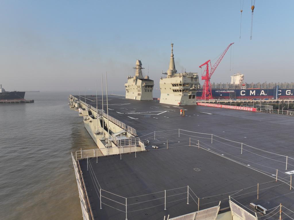 【新華社上海11月14日】中国海軍の076型強襲揚陸艦1番艦「四川」が14日午前9時ごろ、初の航行試験を行うため関係海域に向け上海の埠頭(ふとう)から出航した。