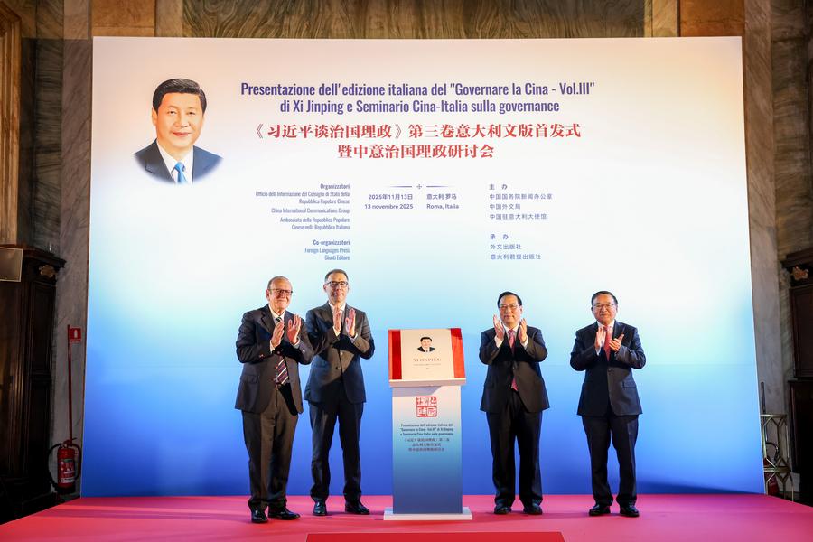 【新華社ローマ11月14日】イタリアの首都ローマで13日、「習近平 国政運営を語る」第3巻のイタリア語版出版記念式典と中国イタリア国政運営シンポジウムが開催され、両国各界の代表約150人が出席した。