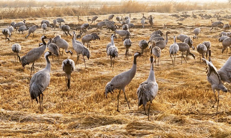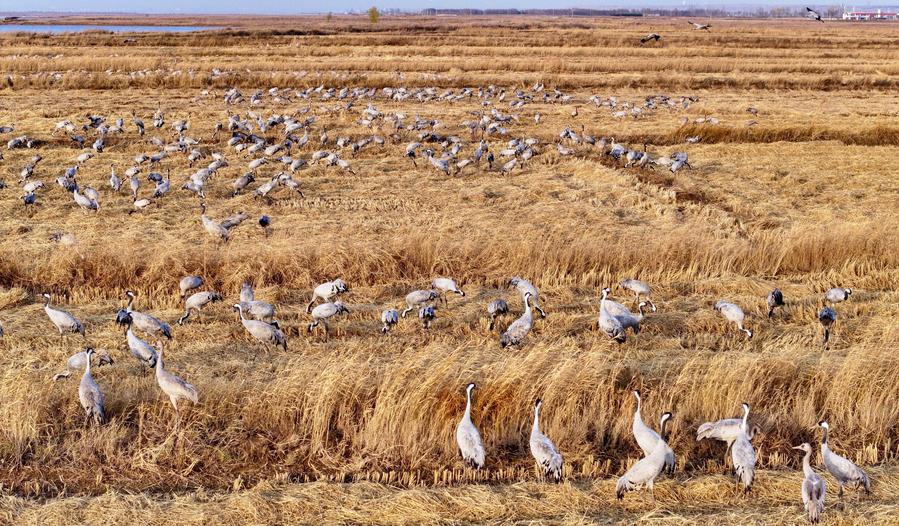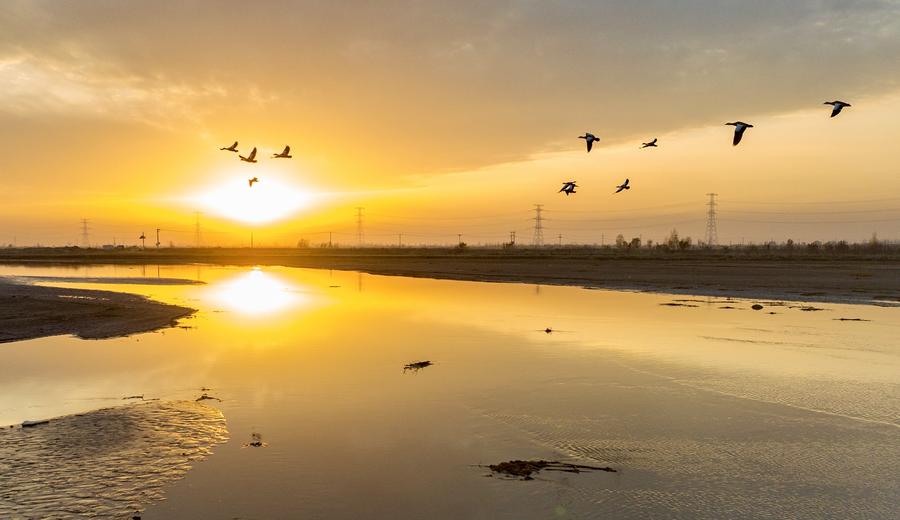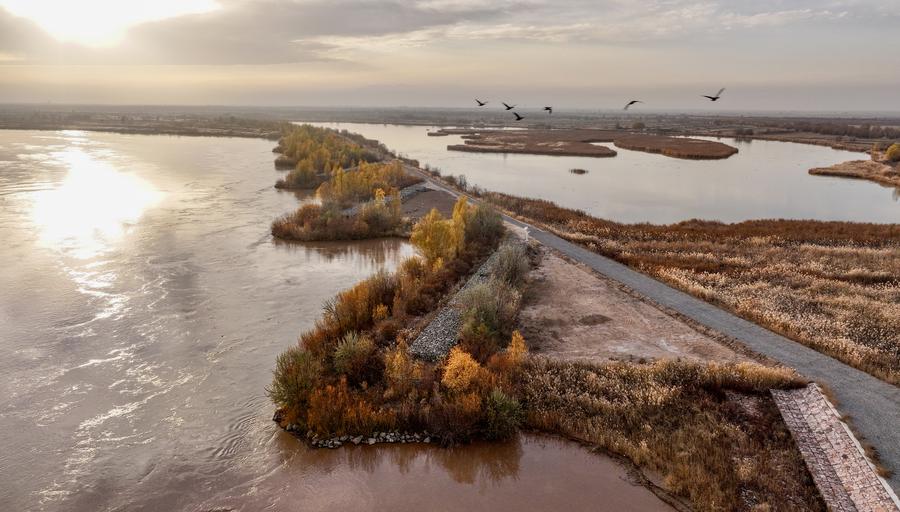 【新華社石嘴山11月14日】中国寧夏回族自治区石嘴山市平羅県の寧夏平羅天河湾国家湿地公園は黄河に隣接し、重要な生態障壁となっている。黄河流域は継続的な環境改善によって渡り鳥の楽園が守られている。