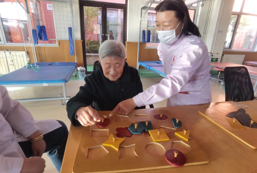 青島市西海岸新区の社会福祉センターで、リハビリ訓練を受ける高齢者。(11月4日撮影、青島=新華社記者/王凱)