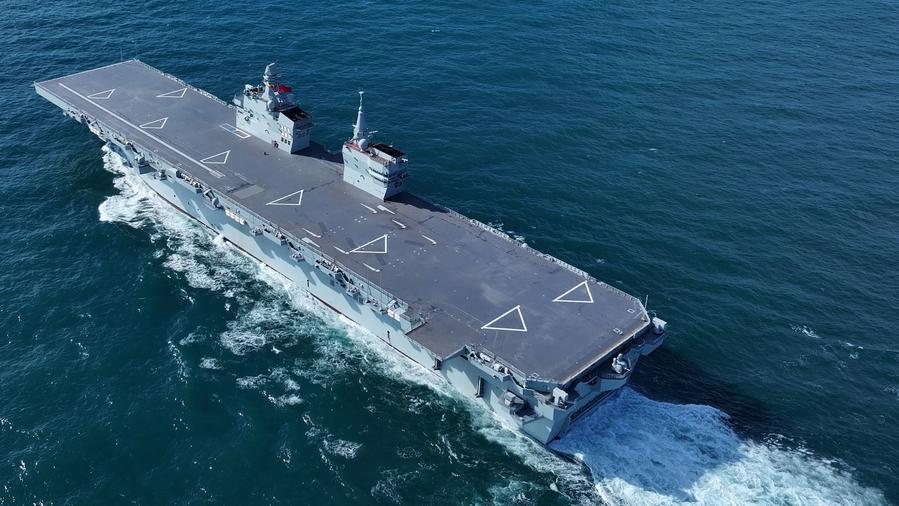 【新華社上海11月16日】中国海軍の076型強襲揚陸艦1番艦「四川」が16日午後5時ごろ、3日間の初航行試験を終え、造船所のふ頭に帰還した。