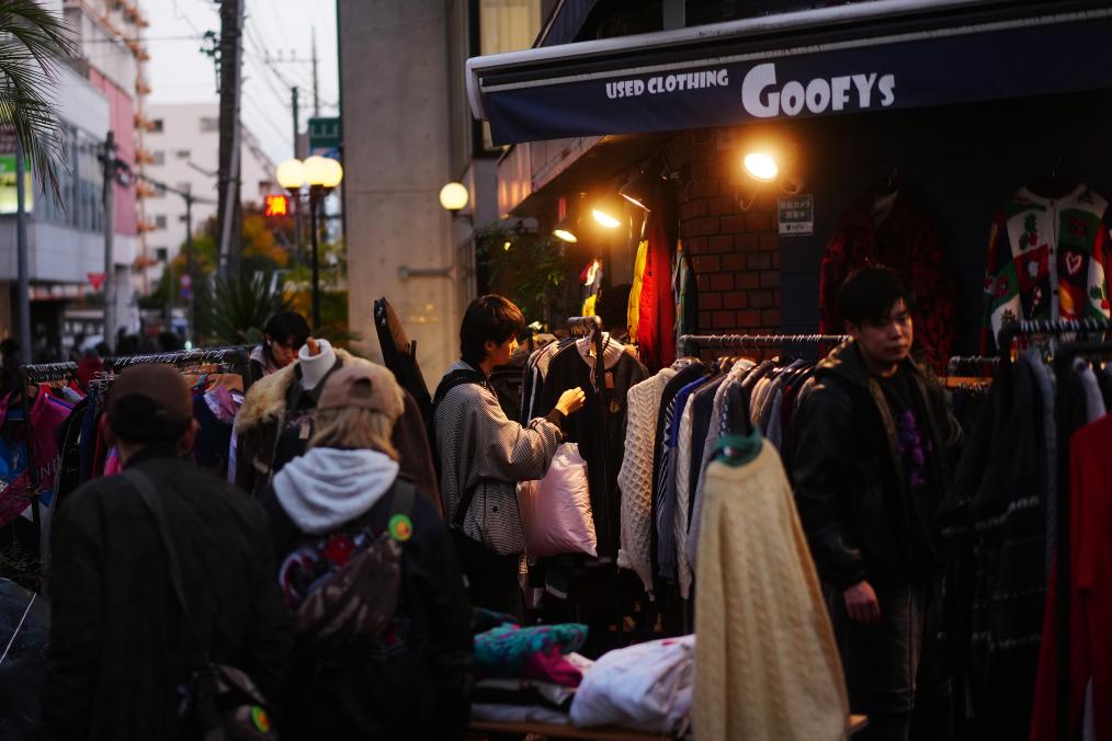 16日、東京にある古着屋で買い物する人々。(東京=新華社記者/賈浩成)