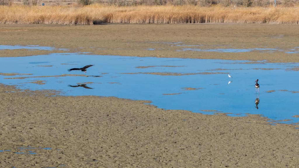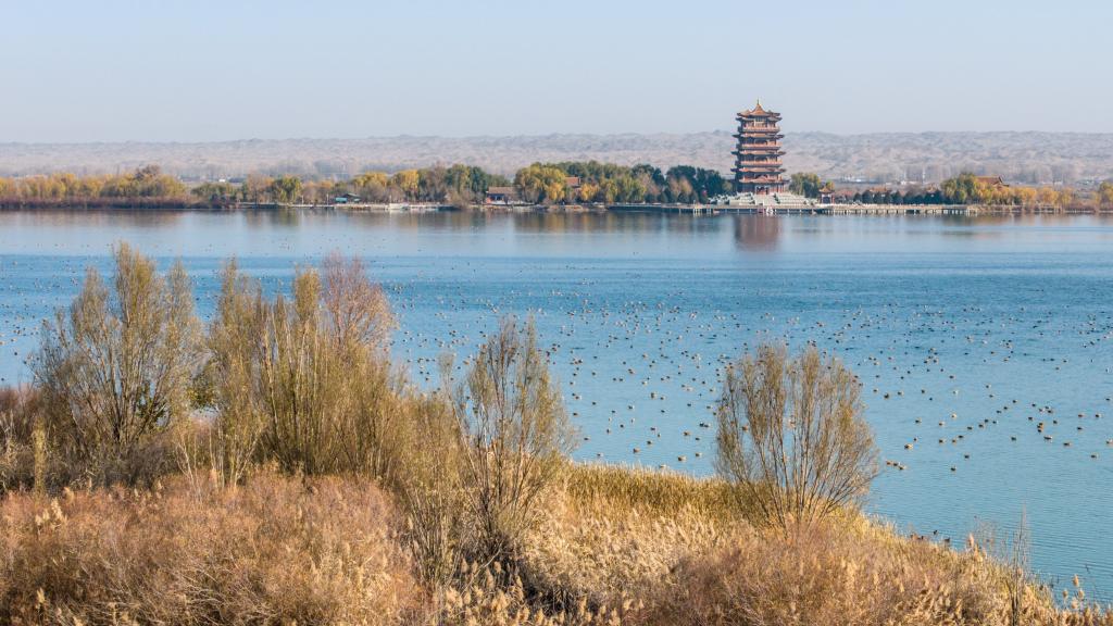 【新華社張掖11月19日】中国甘粛省張掖(ちょうえき)市にある黒河湿地国家級自然保護区の高台県区間は冬に入り、多くの渡り鳥が飛来している。同保護区は世界に9本ある渡り鳥の主要移動ルートの一つ「中央アジアフライウェイ」の重要な中継地として、毎年18万~25万羽の水鳥がここに集まり羽を休める。