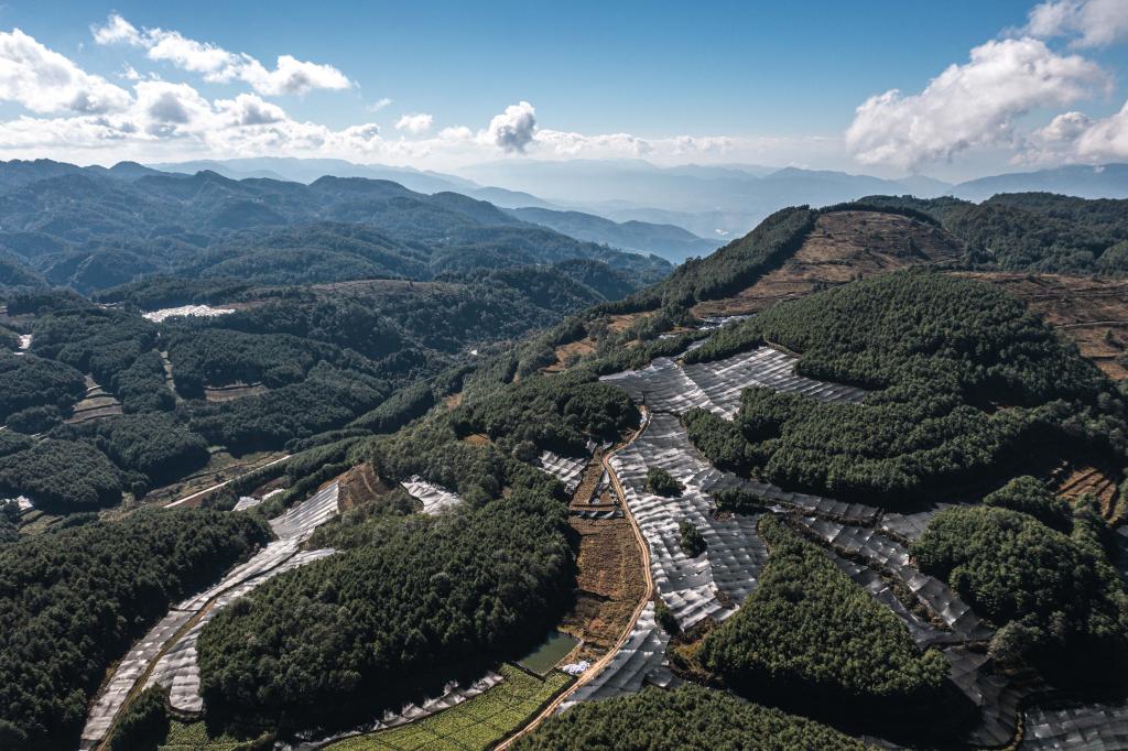 17日、ワサビ栽培地のある雲南省保山市隆陽区。(ドローンから、保山=新華社記者/王冠森)