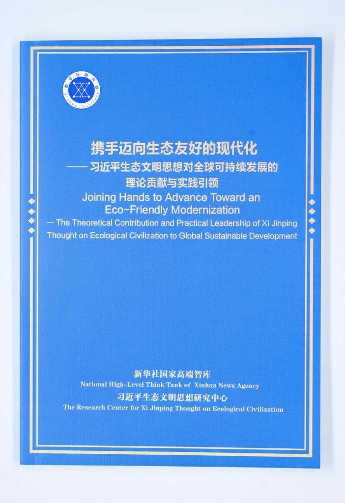 シンクタンク報告書「生態に優しい現代化へと手を携えて前進する-世界の持続可能な発展に対する習近平生態文明思想の理論的貢献と実践的リーダーシップ」。(成都=新華社記者/陳曄華)