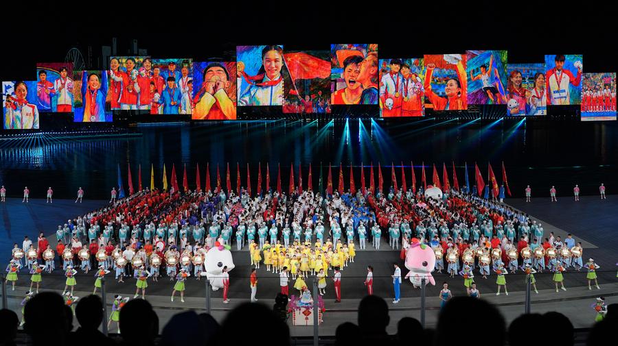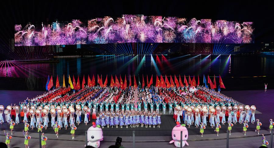 21日、第15回全国運動会の閉会式の様子。(深圳=新華社記者/薛宇舸)