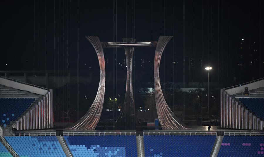 21日、火が消えた広東オリンピックスポーツセンターの聖火台。(深圳=新華社記者/鄧華)