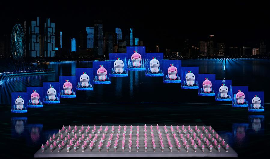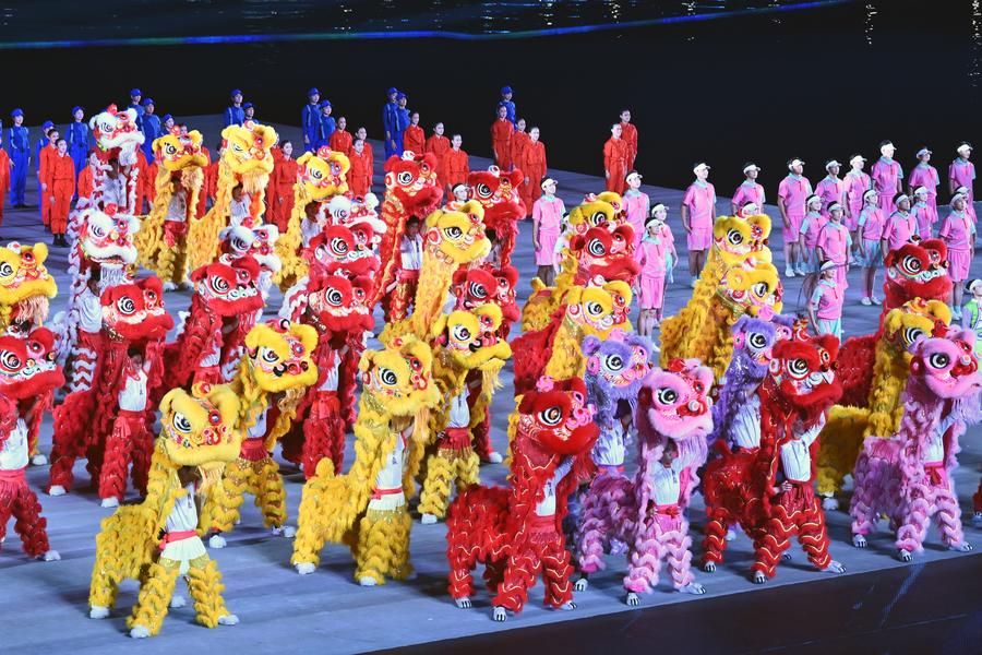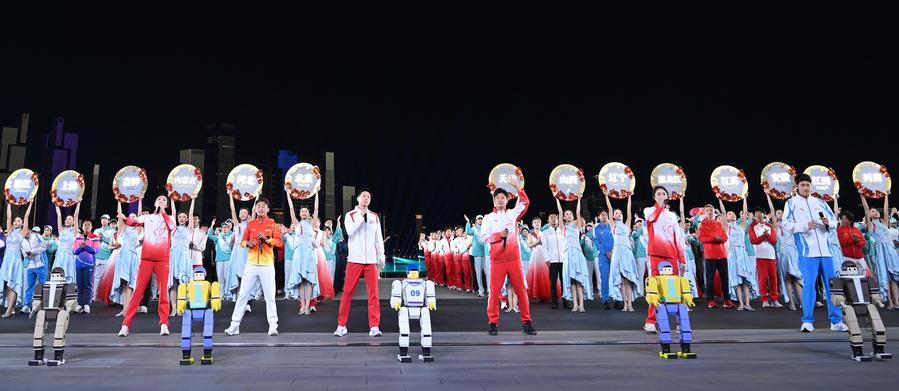 21日、第15回全国運動会の閉会式で行われたパフォーマンス。(深圳=新華社記者/陳益宸)