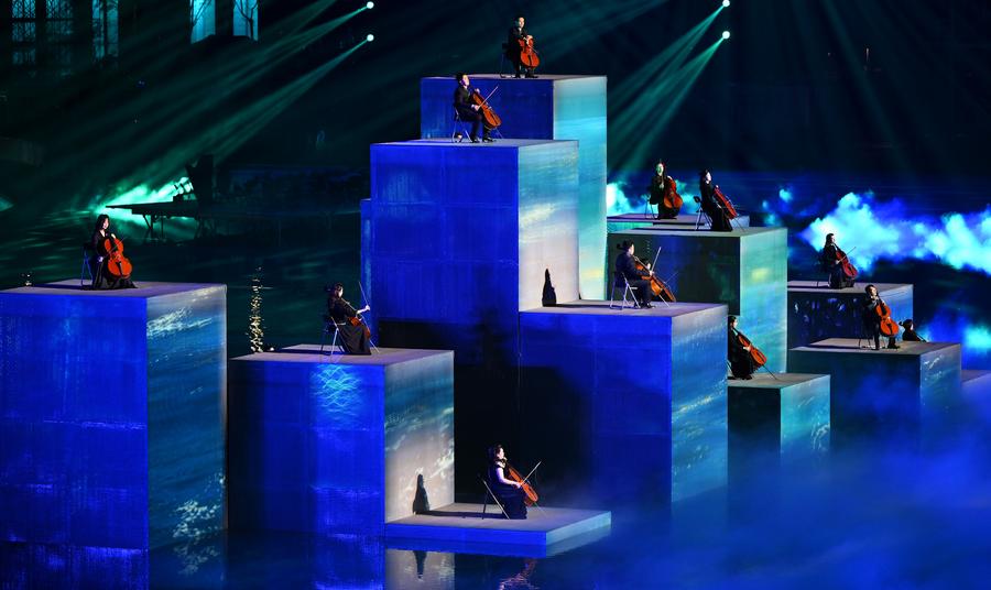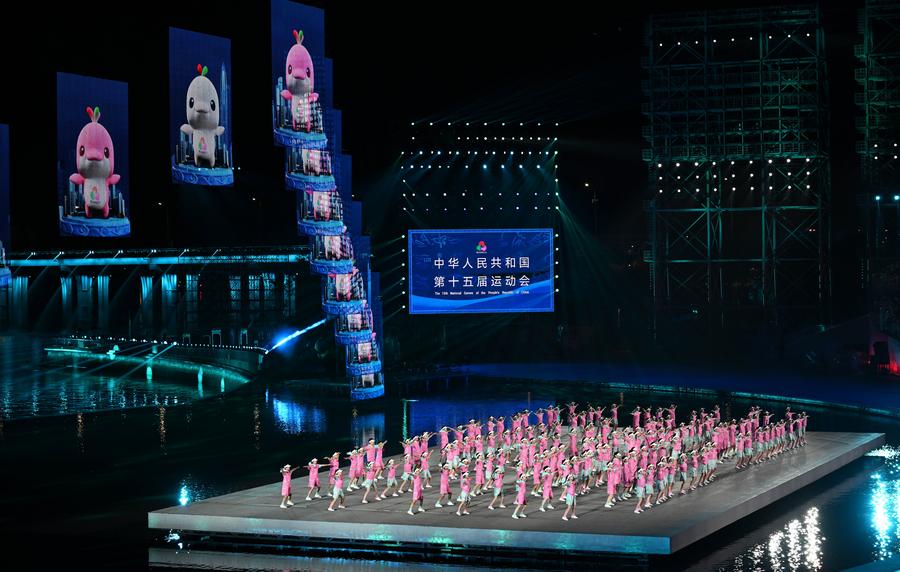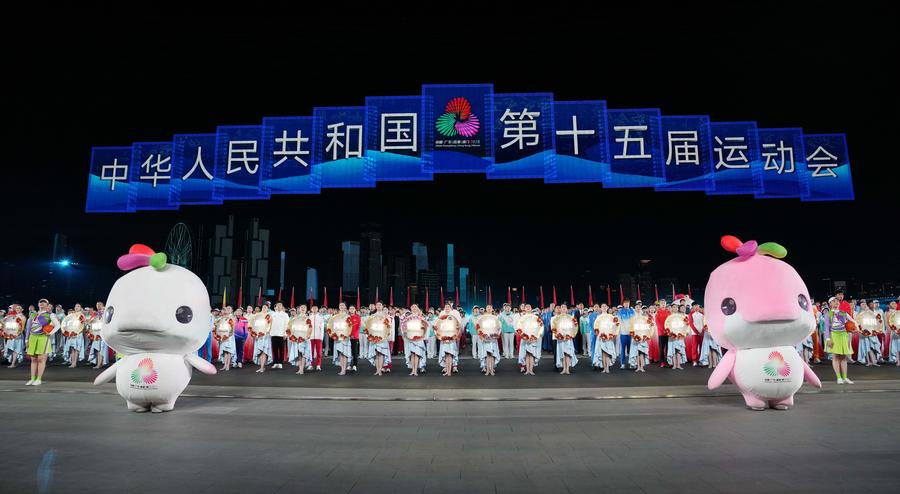 21日、第15回全国運動会の閉会式で行われたパフォーマンス。(深圳=新華社記者/張竜)