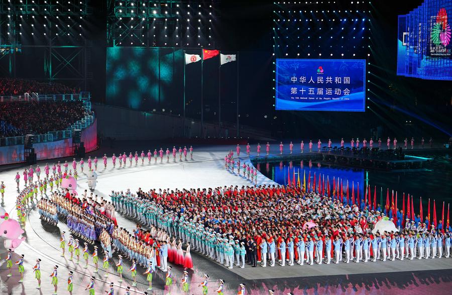 21日、第15回全国運動会の閉会式の様子。(深圳=新華社記者/夏一方)