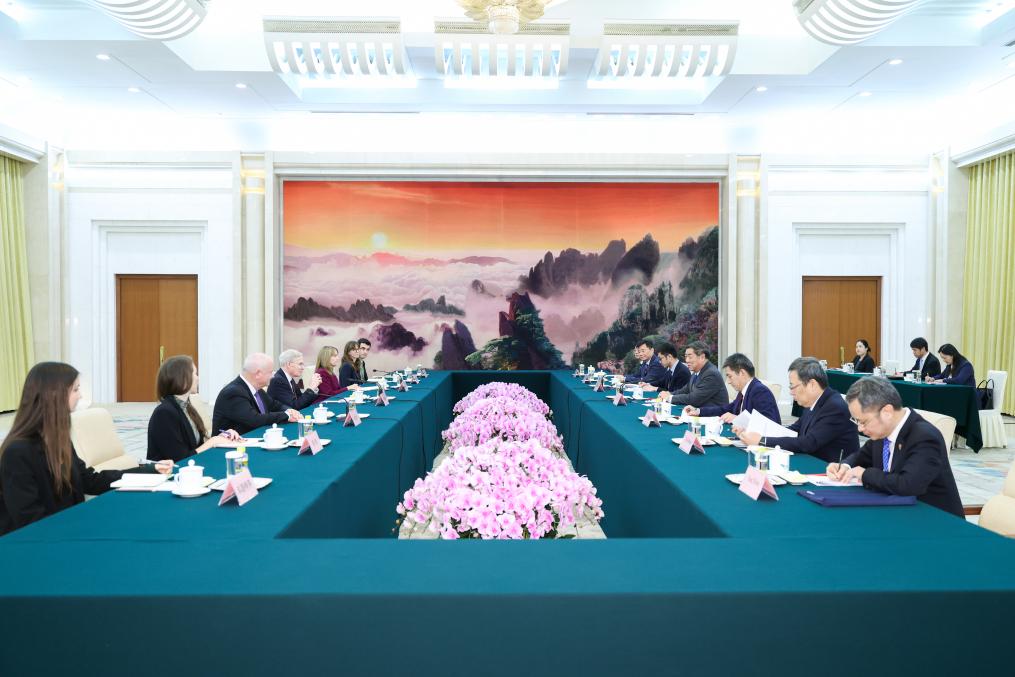 【新華社北京11月22日】中国の何立峰(か・りつほう)共産党中央政治局委員・国務院副総理は21日、米元国家安全保障問題担当大統領補佐官でシンクタンク「アトランティック・カウンシル」執行副議長のスティーブン・ハドリー氏一行と北京の人民大会堂で会見した。