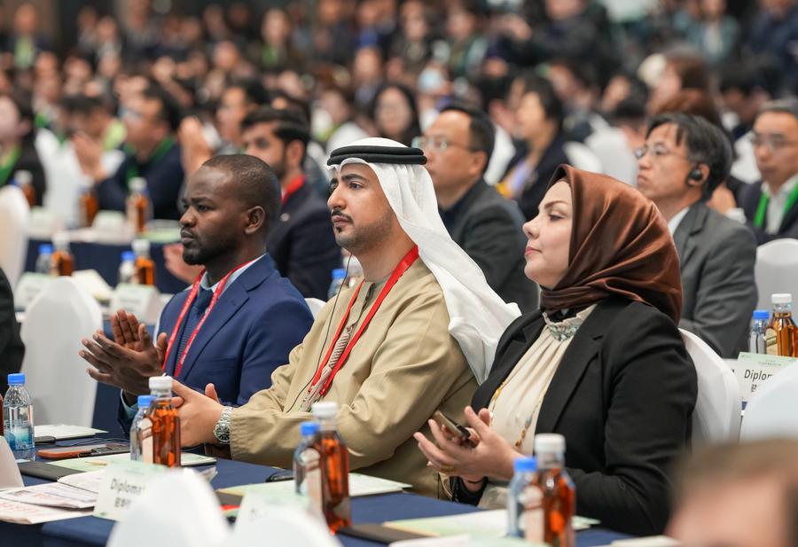 21日、グローバルパンダパートナー大会の開幕式に出席した来賓。(成都=新華社記者/江宏景)