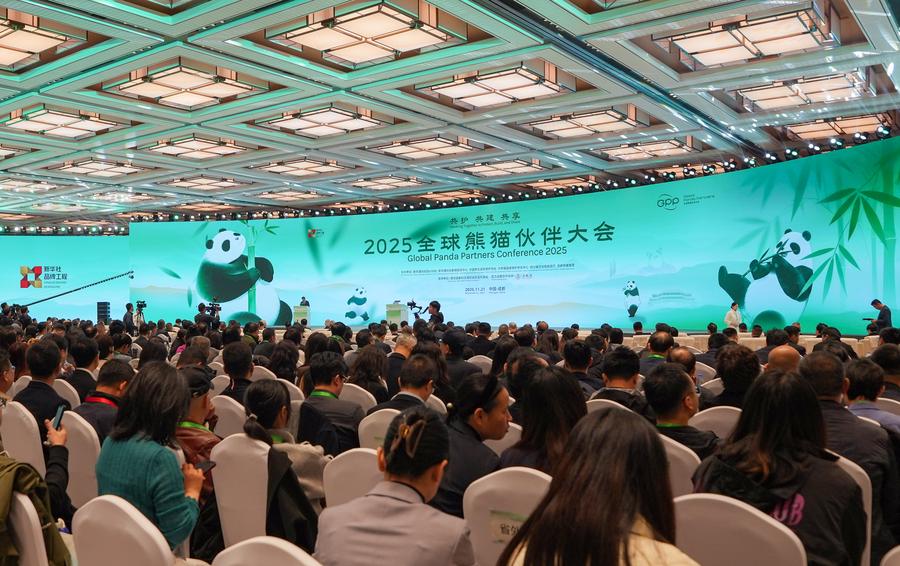 【新華社成都11月22日】中国四川省成都市で21日、パンダや自然の保護に関する国際会議「2025グローバルパンダパートナー大会」が開幕した。「パンダのふるさとを共同で守り、美しい世界を共に築き、開放の機会を共有する」をテーマに、生態系保全とグリーン(環境配慮型)発展を巡る世界的な共通認識を固め、国際交流と協力を拡大し、影響力を高めることを目指す。