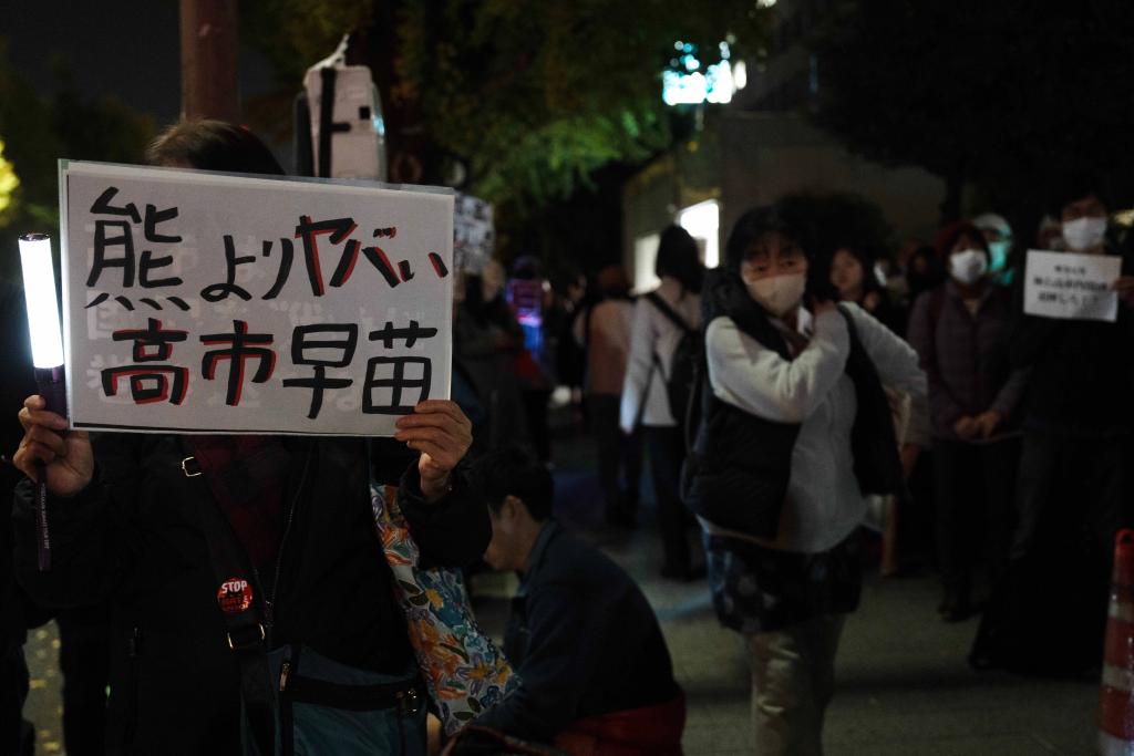 【新華社東京11月22日】東京の首相官邸前で21日、市民数百人が高市早苗首相の台湾に関する発言に抗議する集会を開き、発言の撤回と説明、謝罪を求めた。