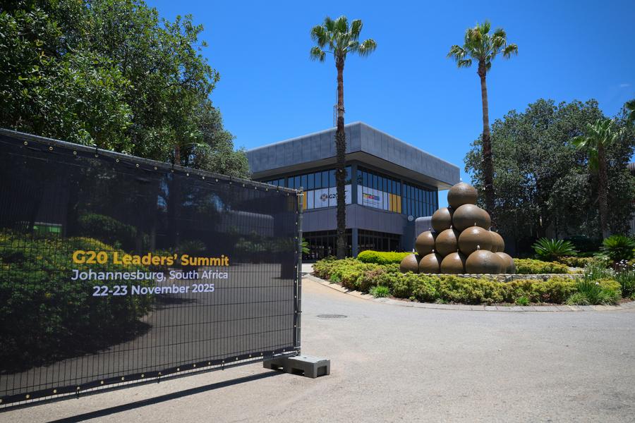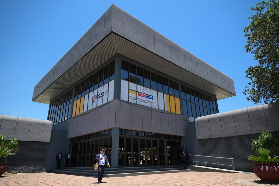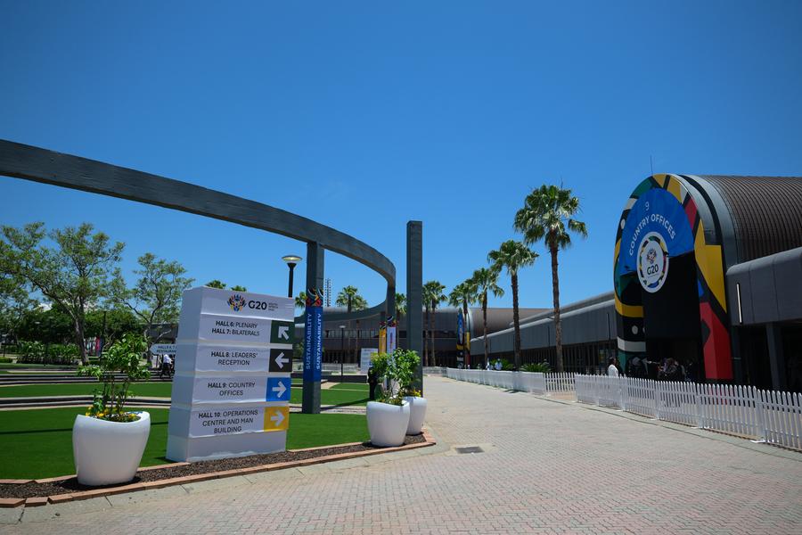 22日、南アフリカのヨハネスブルクで撮影したG20サミット会場の外観。(ヨハネスブルク=新華社記者/楊光)
