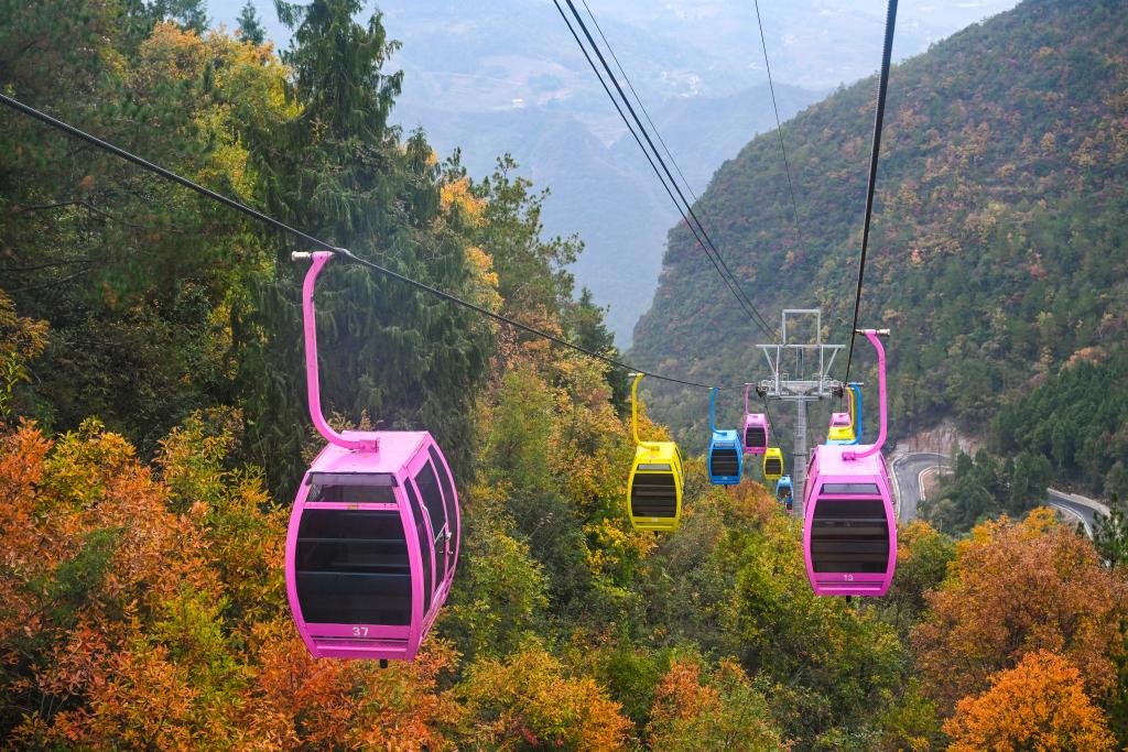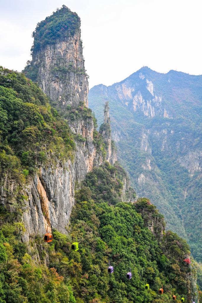 23日、巫峡・神女風景区で観光客を運ぶゴンドラ。(重慶=新華社記者/王全超)