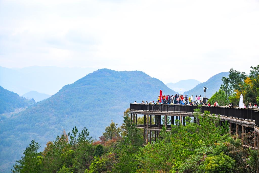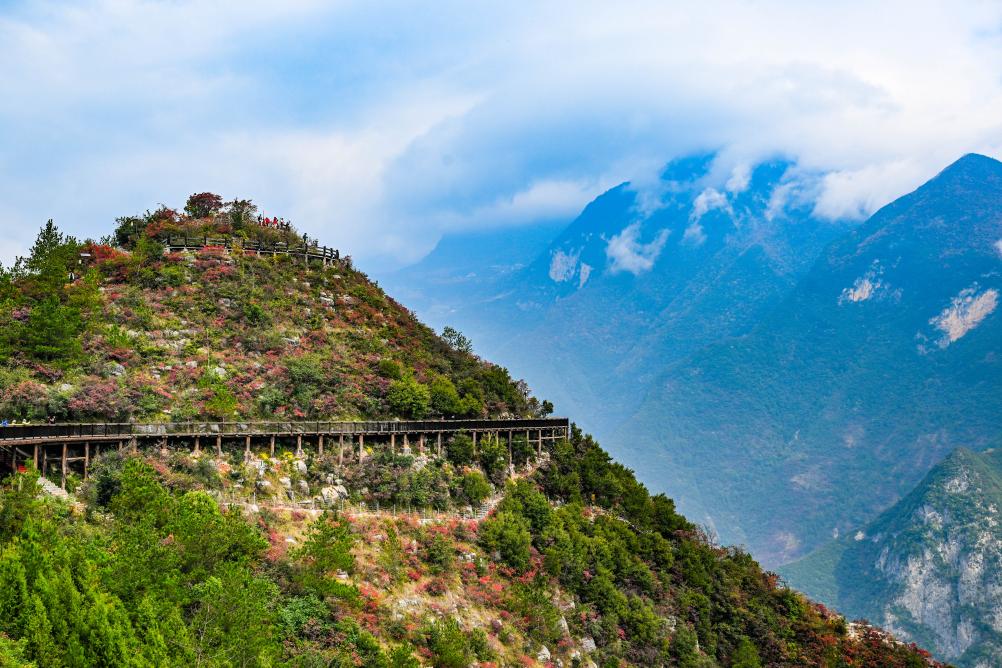 23日、観光客が集まる巫峡・神女風景区の展望スポット。(重慶=新華社記者/王全超)