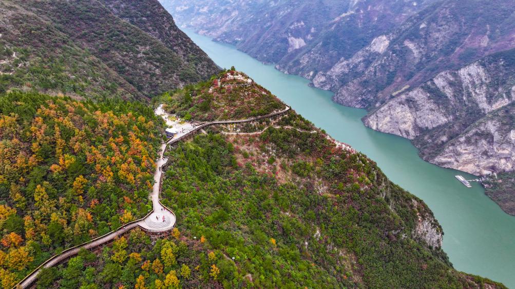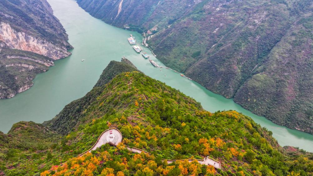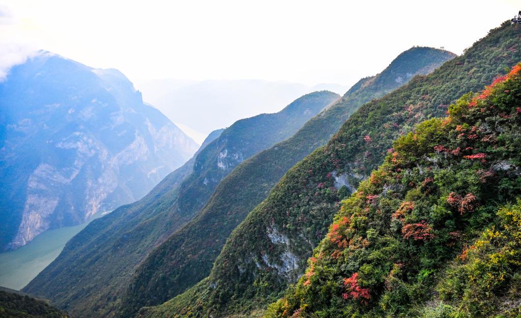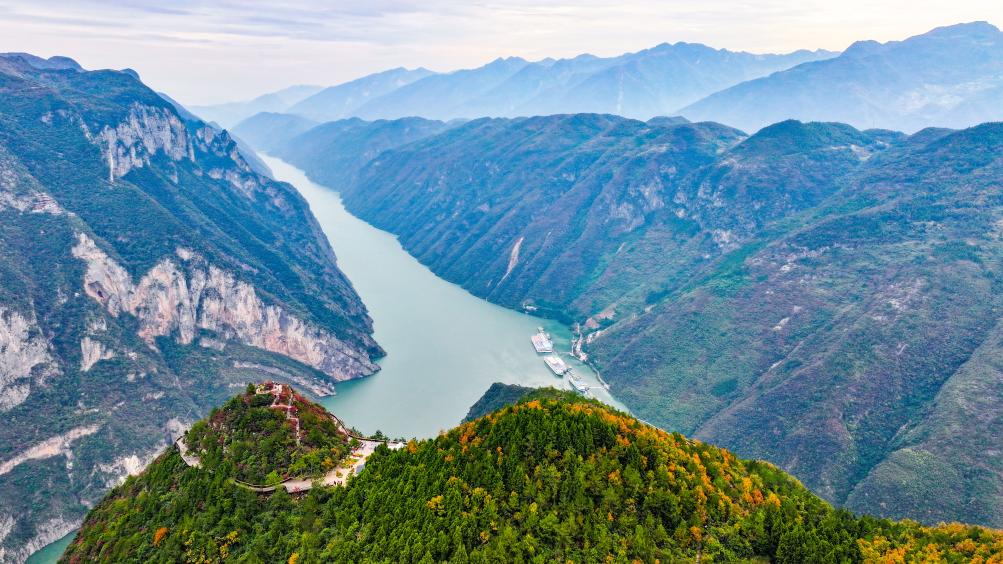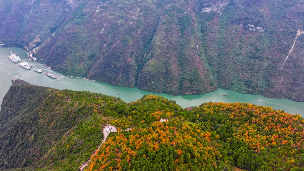 【新華社重慶11月24日】中国重慶市の巫山の巫峡・神女風景区では、初冬の山河が美しい景色を織り成している。