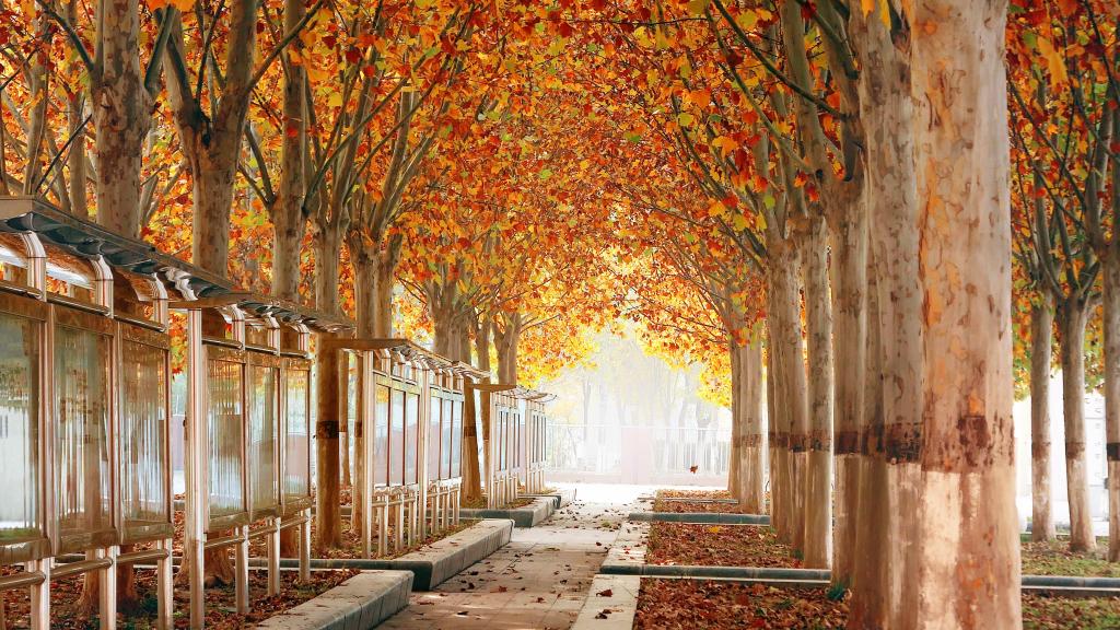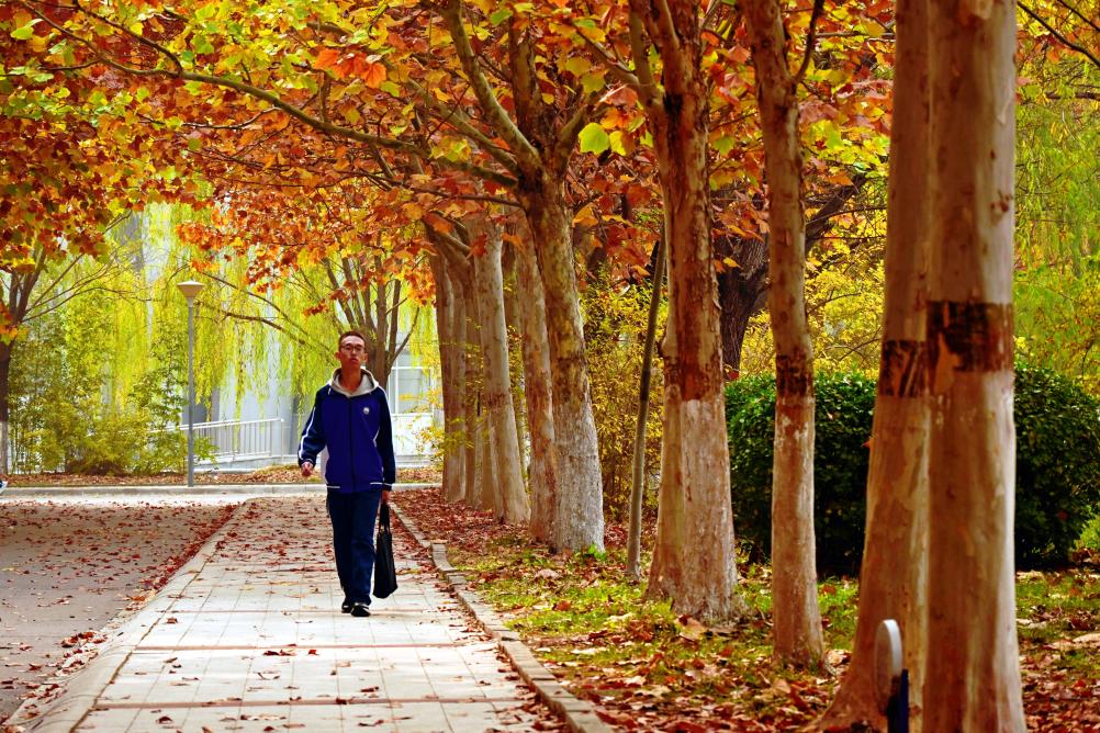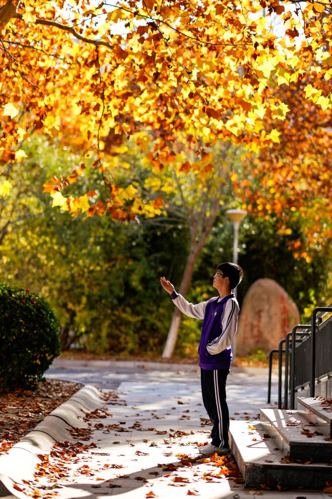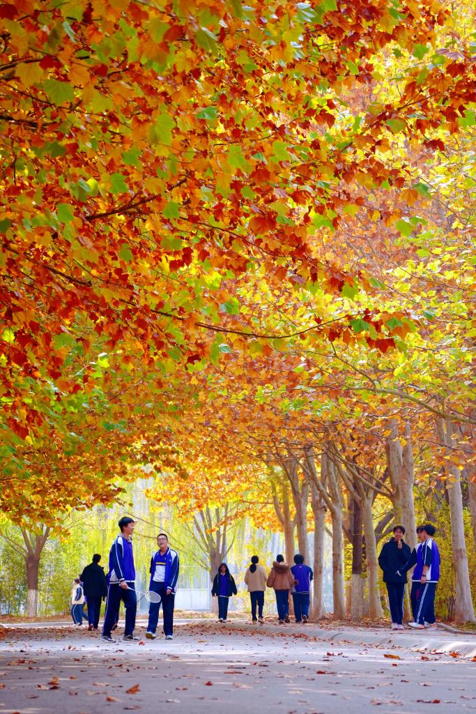 【新華社天津11月25日】中国天津市武清区の楊村第一中学(日本の高校に相当)では晩秋から初冬にかけて木々が鮮やかに色づく。教師や生徒らは木漏れ日に包まれながら、季節の移り変わりを感じ取っている。